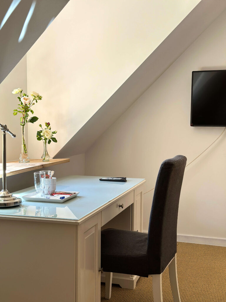 We are restoring the historic manor house to its splendour, when it was the centre of the town’s social life. We are removing layers of paint applied by successive owners, first in the restaurant, now in the rooms. We are doing our best to make the renovation invisible and inaudible for the guests.